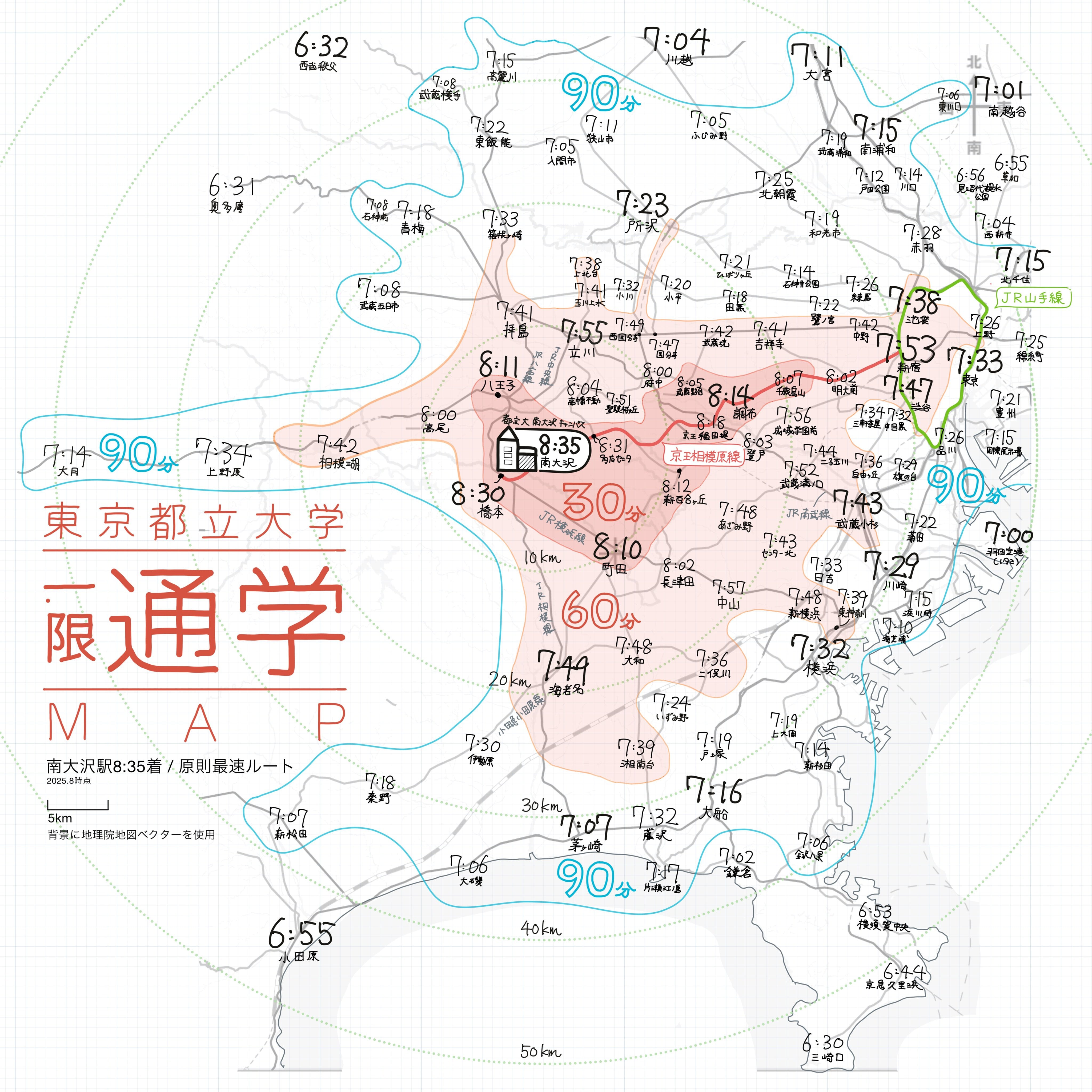 東京都立大学一限通学MAP